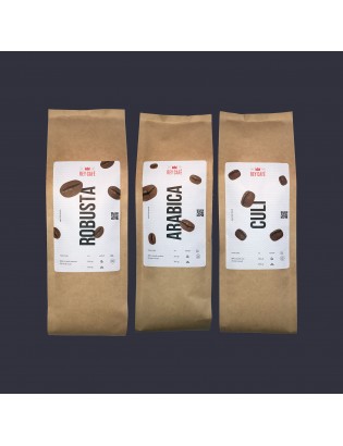 Bộ cà phê thuần hạt nguyên chất có bơ gồm: Robusta, CuliArabica.